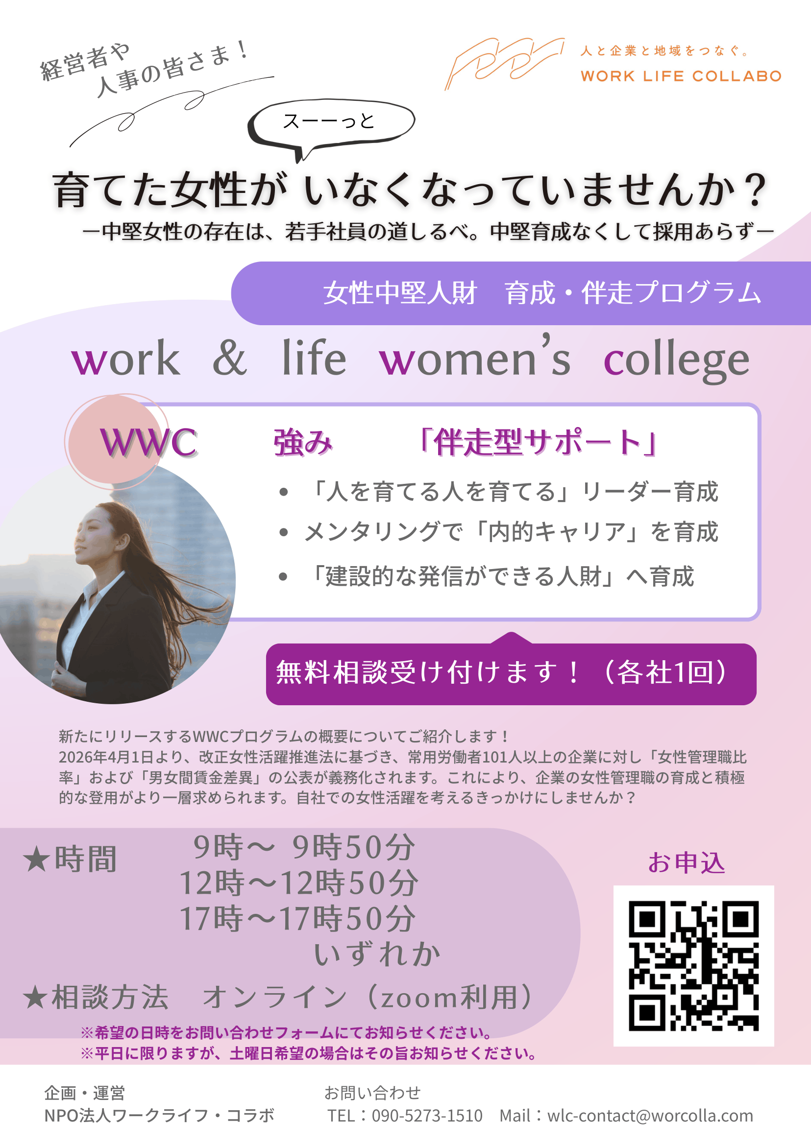 「work & life women’s college(WWC)」 を新たにスタートいたします。